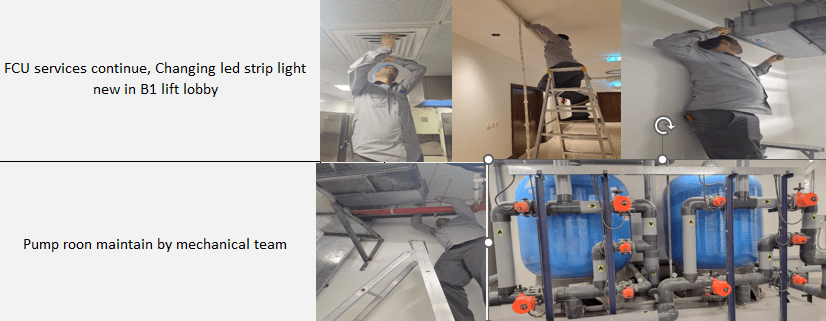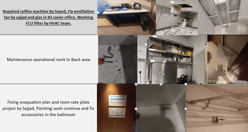 Lighting System: All Emr and exit light ok. Authriam Manual operating till Al Fanniya sets program CCMS, Façade light working Manual timing 5.40pm.