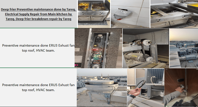 Preventive Maintenance Done, For Fryer pan, Griller hot plate, Combi oven.